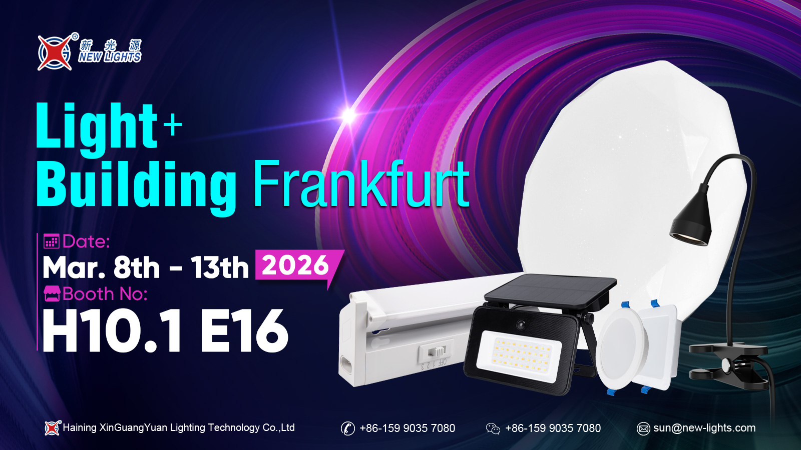 órától a Haining Xin Guang Yuan Lighting Technology Co., Ltd. részt vesz a nemzetközi világítástechnikai kiállításon a németországi Frankfurtban. 2026. március 8-tól március 13-ig . A cég kiállításon lesz fülke H10.1 E16 . A kiállítás során a Haining Xin Guang Yuan Lighting Technology Co., Ltd. bemutatja legújabb világítási technológiáit és termékmegoldásait, és mélyreható eszmecserét folytat az iparági szakemberekkel és partnerekkel a világ minden tájáról. A standnál megbeszélésekre és együttműködési lehetőségekre várjuk a látogatókat.